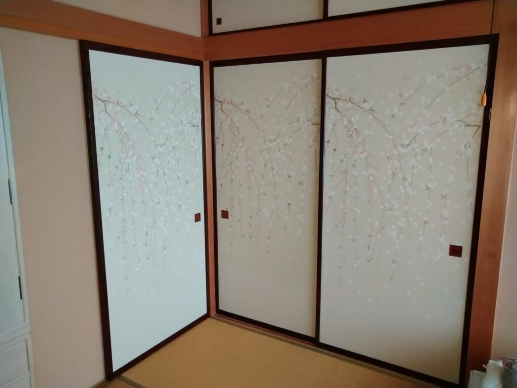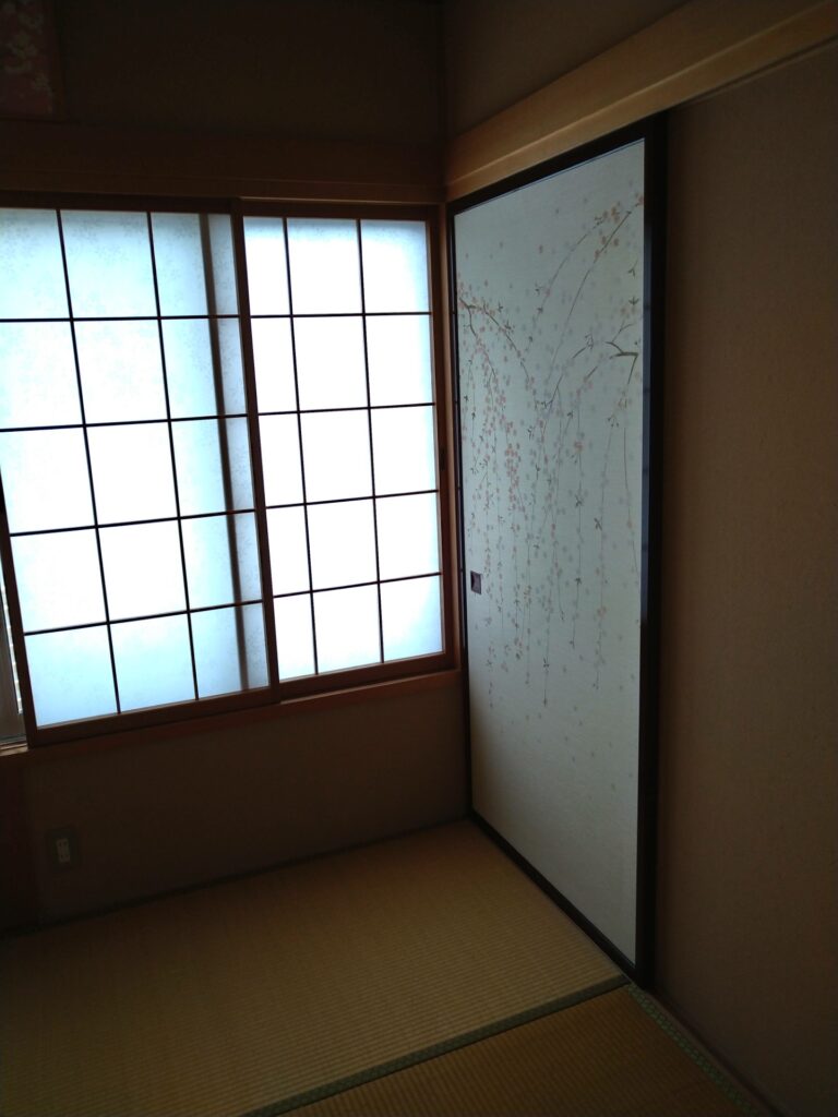 「あかつき」に張替え。障子は笹柄。